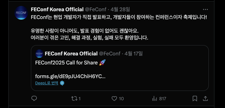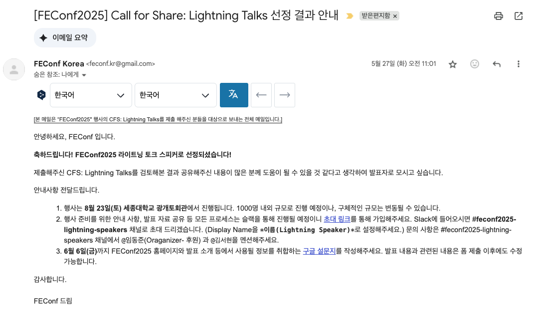 이 생각이 든 건 몇 달 전부터였다. 어느 모임에서 feconf 2024 라이트닝 연사자 분을 만나게 되었다. 재미있게 이야기 하던 도중 나에게 날아든 질문이 있었다.