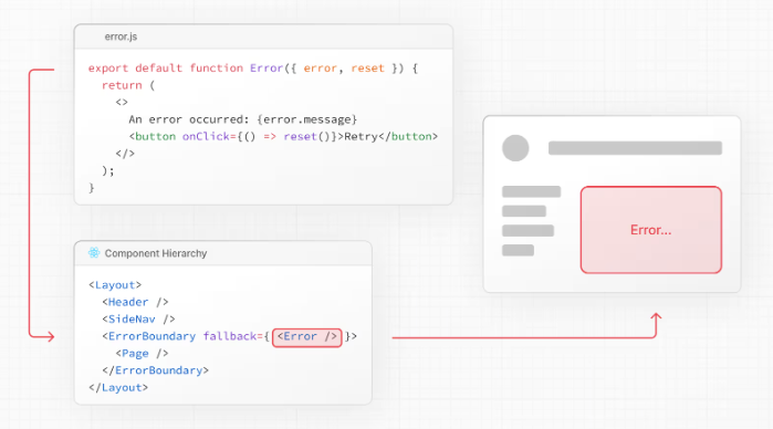 - Next.js 13부터 제공되는 기능으로, 애플리케이션의 에러를 처리하는 데 사용됩니다.