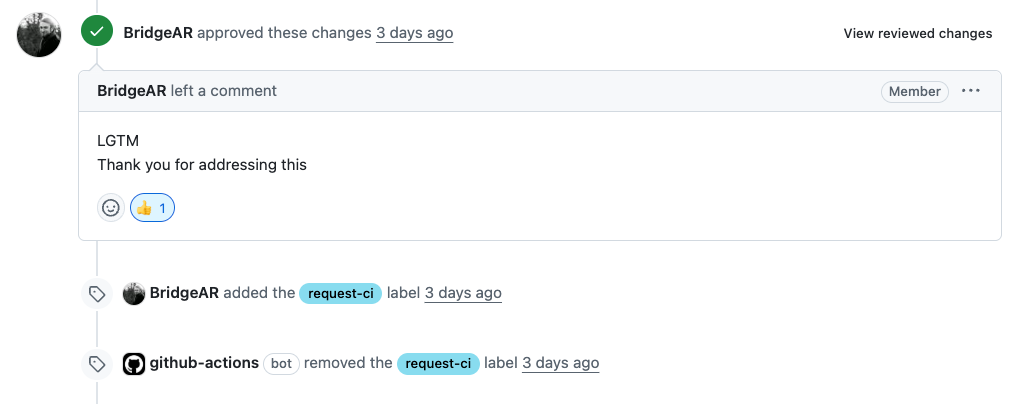메인테이너는 빠르게 승인을 줬지만, 병합은 다른 PR과 함께 진행하는 듯했다.